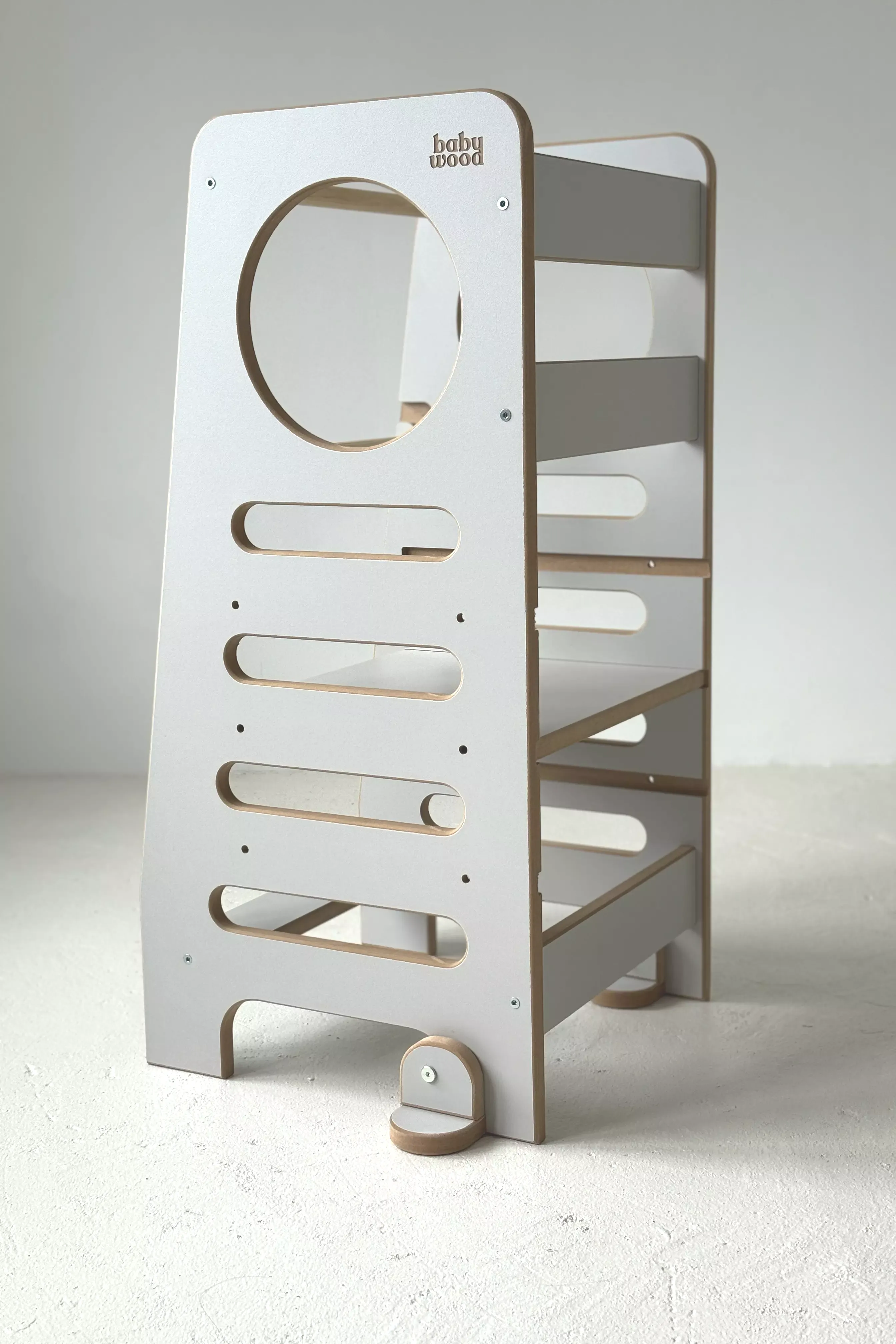 Kitchen Helper posiada 3-stopniową regulację podestu, wobec tego z jego zalet mogą korzystać już kilkumiesięczne (samodzielnie stojące) Maluchy. To produkt, który rośnie razem z dzieckiem, dzięki czemu zagości w Waszym domu na dobrych kilka lat!