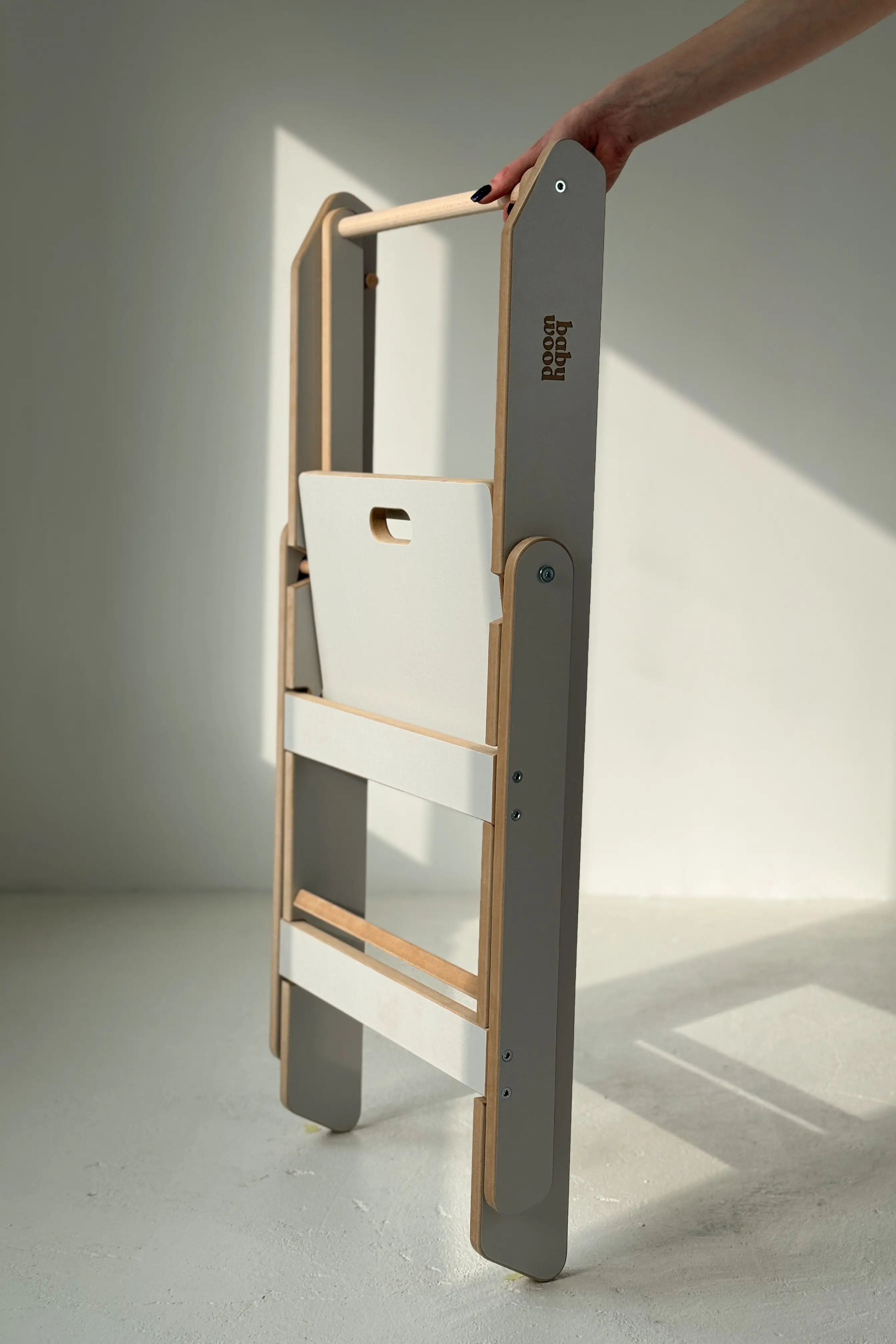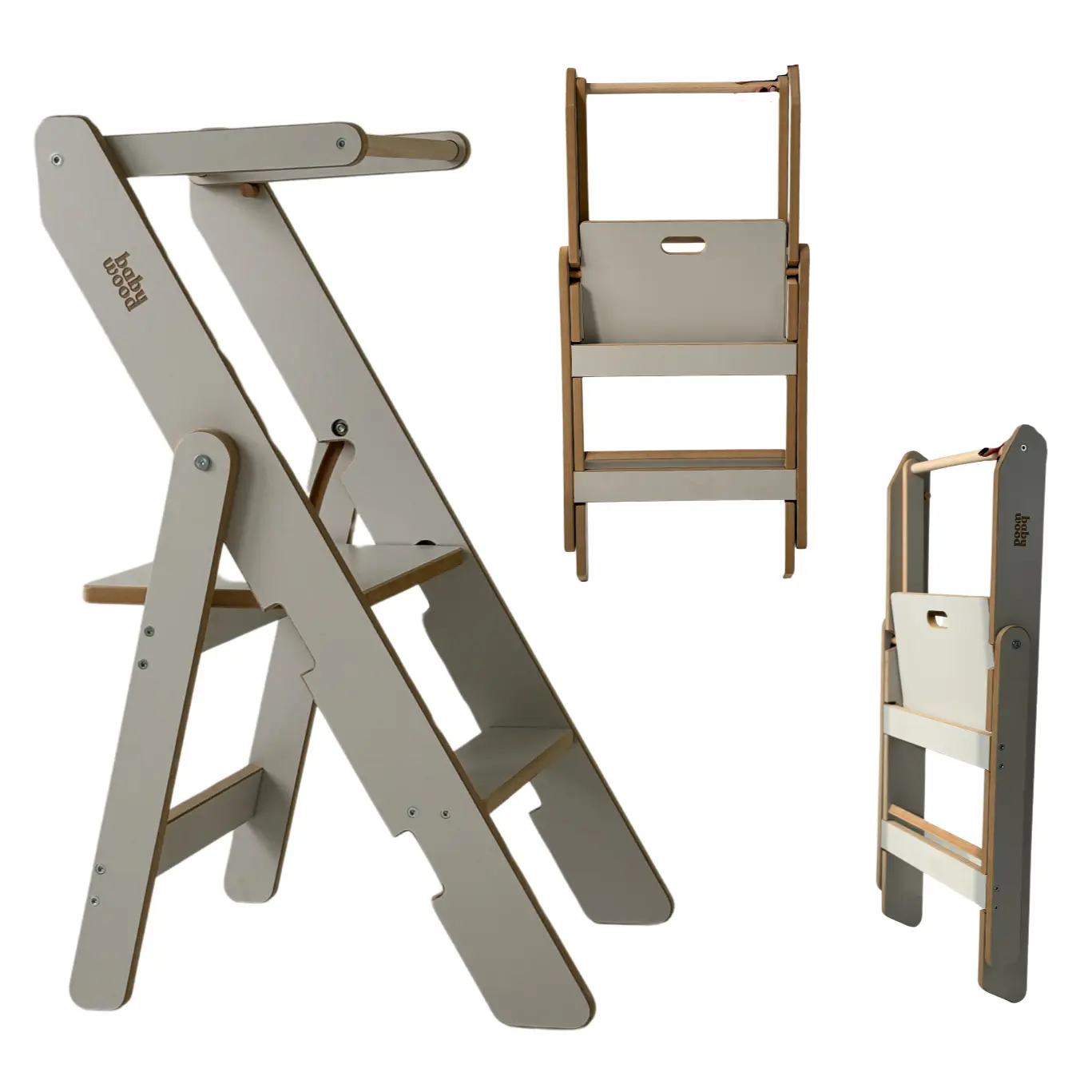 W dalszym ciągu postawiliśmy sobie za priorytet zapewnienie dzieciom bezpieczeństwa podczas zabawy. Składany pomocnik kuchenny posiada zaokrąglone ranty oraz dodatkowe rzepy montażowe, które zapobiegają samoistnemu złożeniu się Kitchen Helpera.