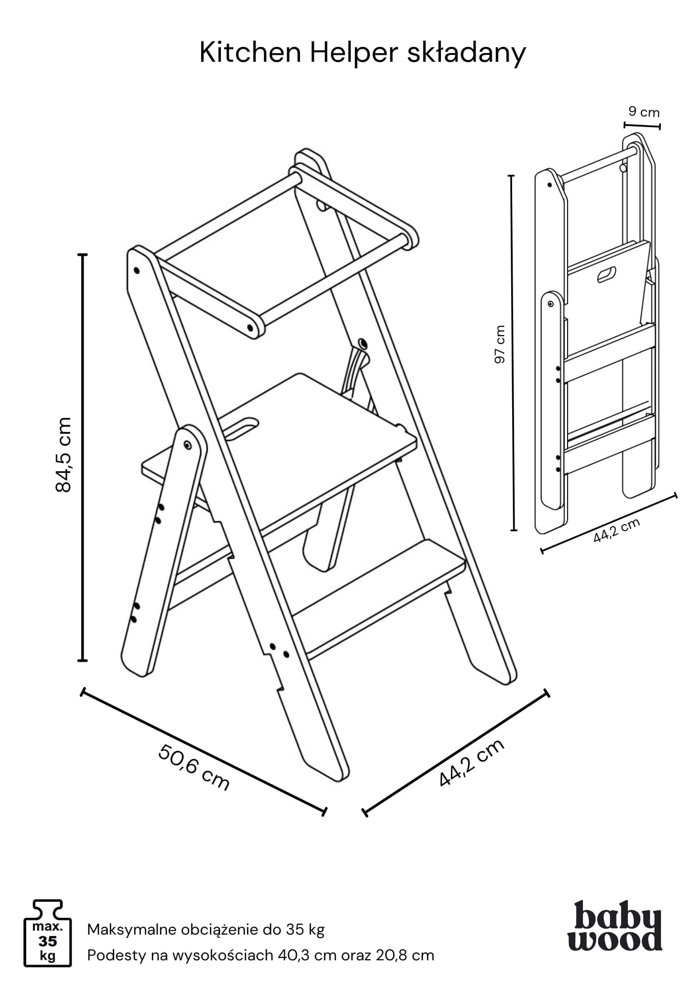 Kitchen Helper składany zostanie dostarczony do Ciebie w formie do samodzielnego złożenia. Bez obaw, to proste! Montaż jest niezwykle łatwy i intuicyjny. Dołączamy szczegółową instrukcję, która pomoże Ci krok po kroku zbudować to funkcjonalne i bezpieczne miejsce dla Twojego dziecka w kuchni. W krótkim czasie, zyskacie to wspaniałe wsparcie, które pozwoli Waszemu małemu kucharzowi uczestniczyć w codziennych przygotowaniach.