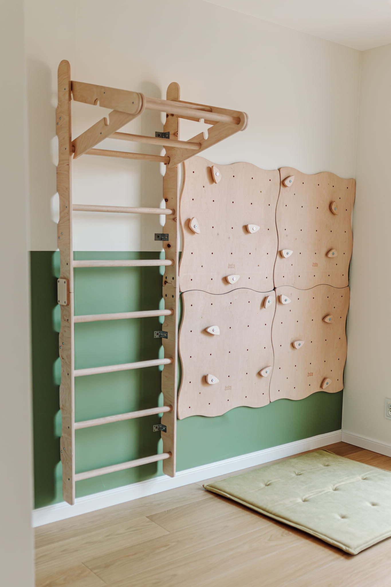 - Bezpieczna zabawa w Twoim domu. Nasze moduły są solidne, stabilne i łatwe w montażu. Mocujesz je do ściany, tworząc trwałą i bezpieczną konstrukcję. Wystarczy dołożyć miękką matę na podłodze i już możesz być spokojny, że maluch wspina się w bezpiecznych warunkach.