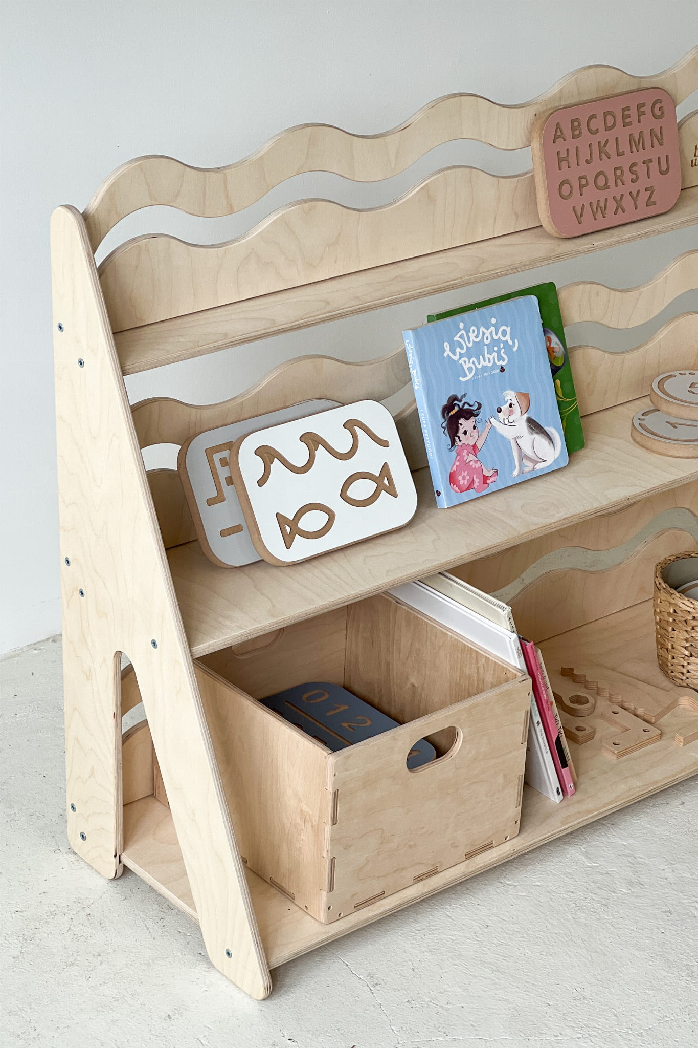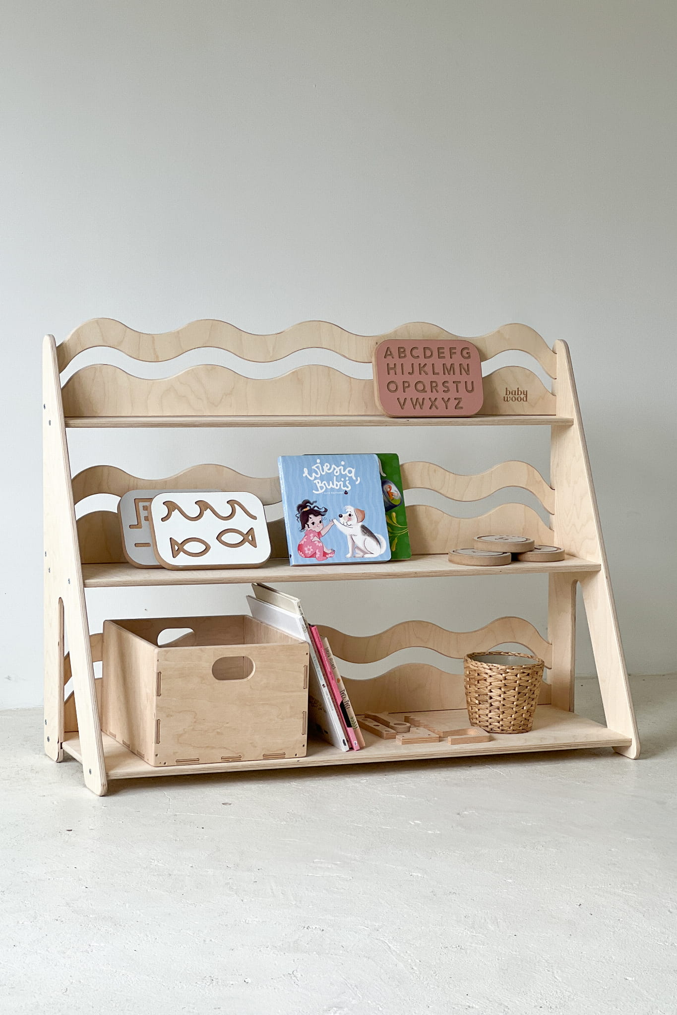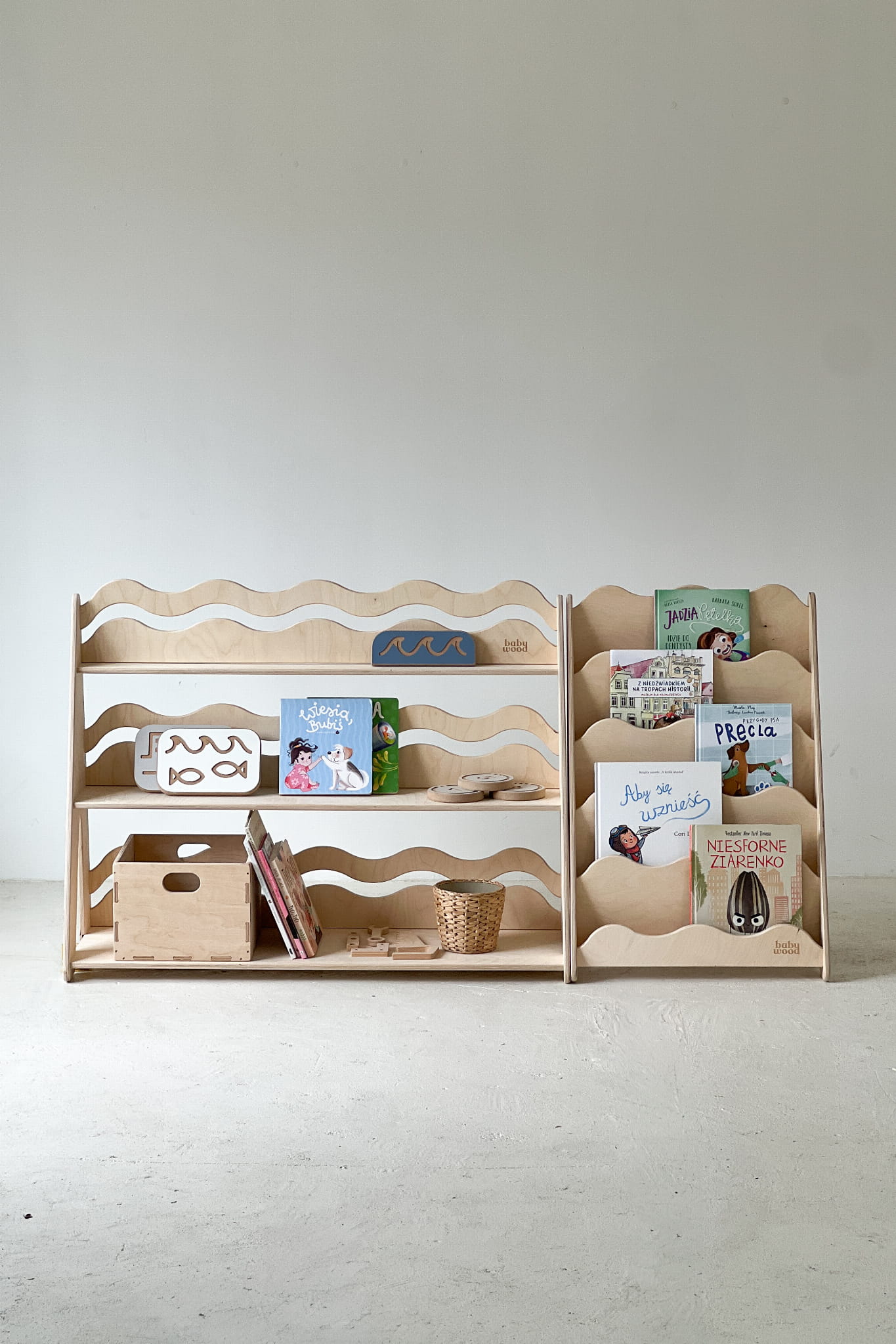 Niezależnie od rozmiaru – Regał WAVE to mebel, który łączy estetykę z funkcjonalnością. Tworzy przestrzeń, w której łatwiej o porządek, a jeszcze łatwiej… o dziecięcą radość z samodzielnego działania.