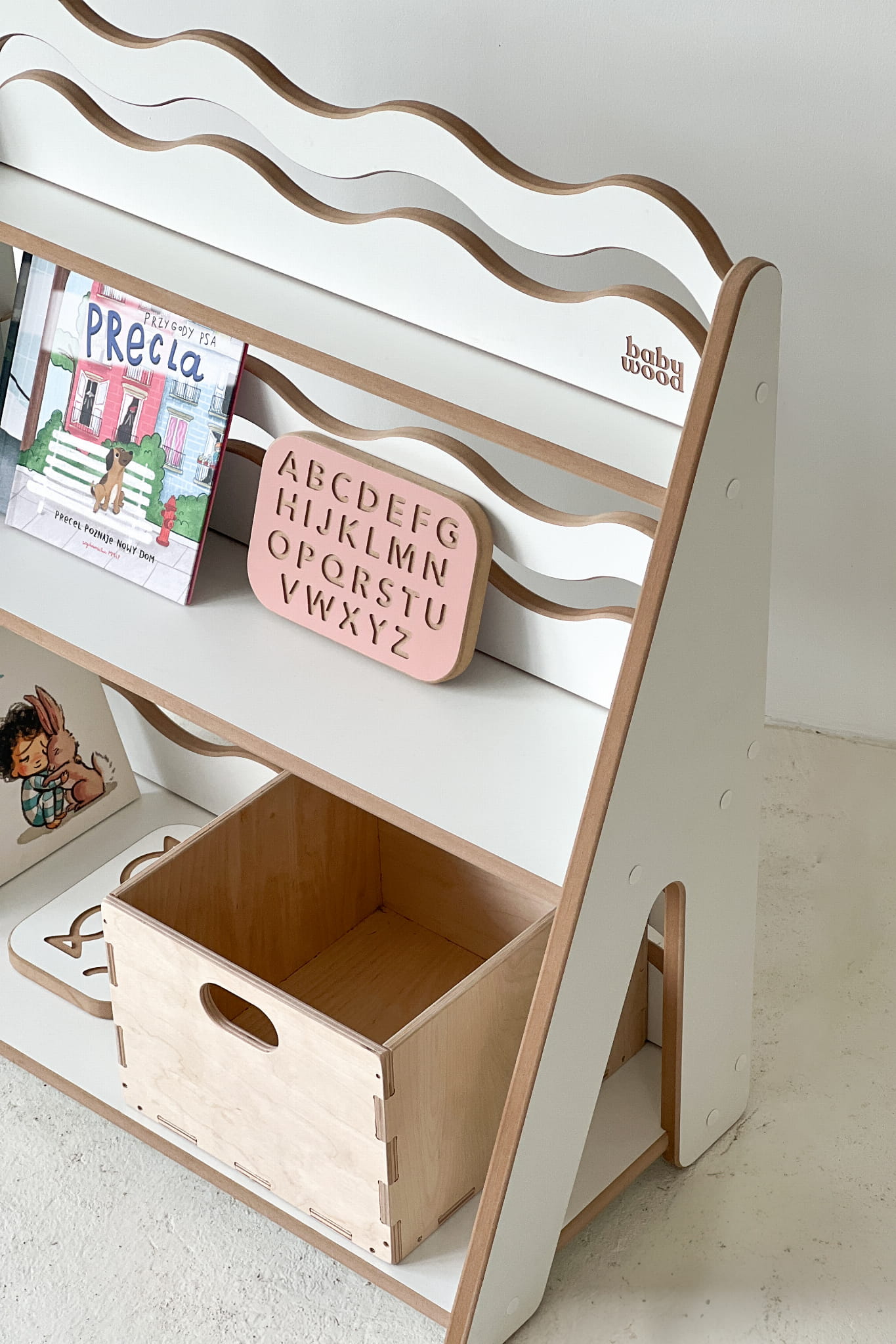 Niezależnie od rozmiaru – Regał WAVE to mebel, który łączy estetykę z funkcjonalnością. Tworzy przestrzeń, w której łatwiej o porządek, a jeszcze łatwiej… o dziecięcą radość z samodzielnego działania.